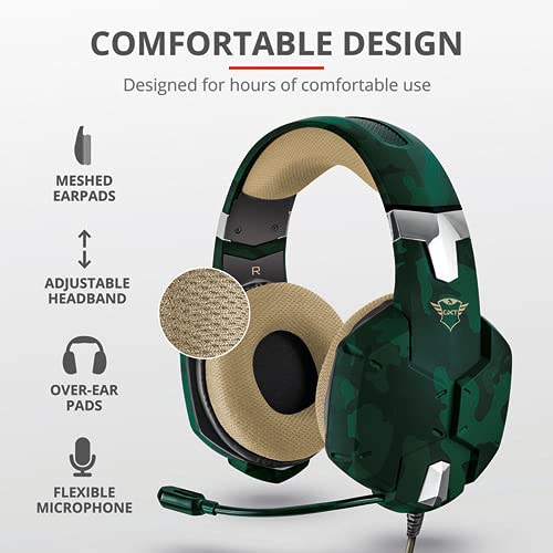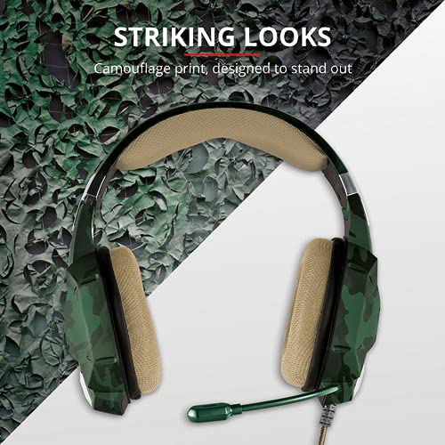 Trust Cascos Gaming GXT 322C Carus Auriculares Gamer con Micrófono Flexible y Diadema Ajustable, Cable de 1 m, para PS4, PS5, PC, Nintendo Switch, Xbox One, Xbox Series X - Verde Camuflaje