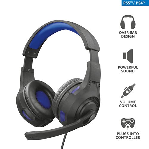 Trust Gaming Cascos PS4 & PS5 GXT 307B Ravu Auriculares Gamer con Micrófono Plegable y Corto y Diadema Ajustable, Cable de 2 m, para Playstation 4 & 5 - Azul
