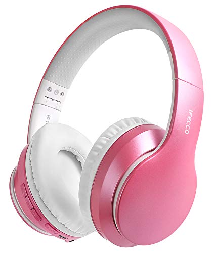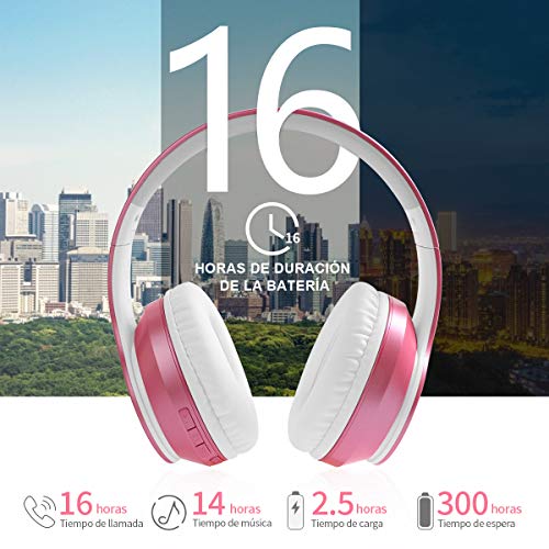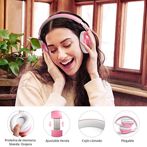 Cascos Inalambricos Bluetooth, Auriculares Diadema Estéreo Inalámbricos Plegables, Micrófono Incorporado, Cascos Bluetooth Inalámbrico y Audio Cable para PC/ MP3/Móviles/TV(Rosa)