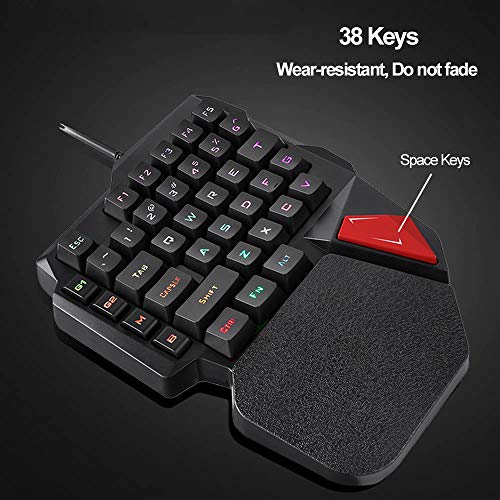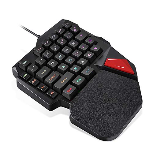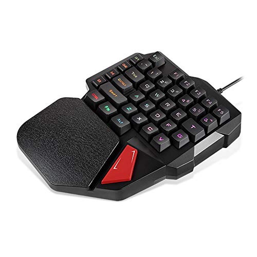 FELiCON K108 Teclado de Juegos de Una Sola Mano Teclado de Juegos con Cable 38 Teclas 3 Colores LED Retroiluminado USB Multimedia Ergonómico Anti Fantasma con Reposamuñecas para PC Computadora