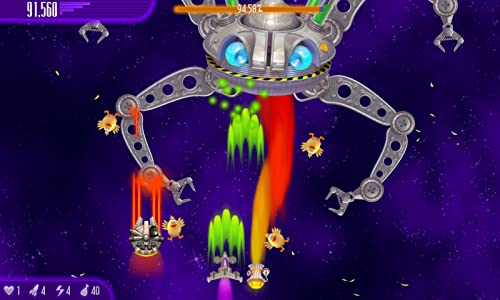 - - Fight through 110 waves of invading chickens to the final confrontation with the mother-hen ship
