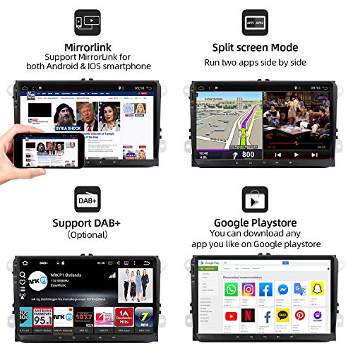 - 【MULTIFUCCIÓN】 Admite radio Dab +, capacidad de transmitir Spotify y Pandora desde tu teléfono a través de Bluetooth para disfrutar de millones de canciones que te gustan y hacer llamadas manos libres mientras conduces. Y manténgase conectado a su teléfono a través de EasyConnection. Cualquier contenido del teléfono inteligente Android o iOS se puede reflejar en este estéreo de automóvil