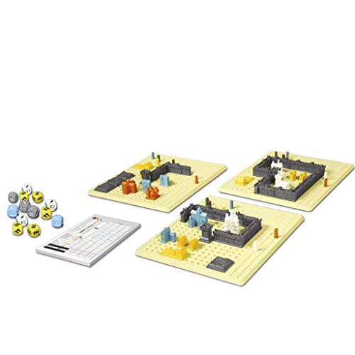 - Contiene: 130 miniaturas, 36 dados, 4 tableros de jugador, 25 clavijas, 5 marcadores, 1 bloc de hojas de puntuación, 4 pantallas y 1 reglamento.