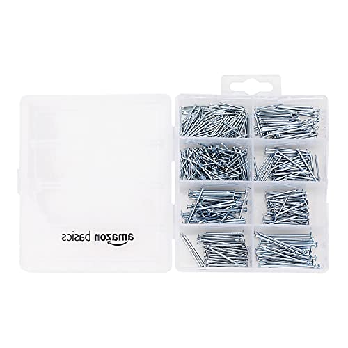 Amazon Basics - Juego de clavos variados; incluye clavos de acabado, de alambre, normales, brad y para colgar cuadros, 550 unidades