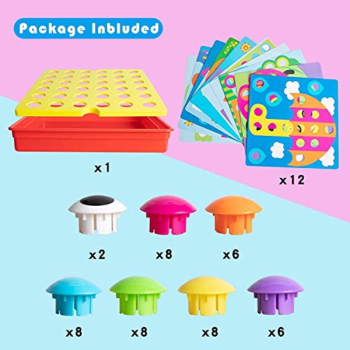 Rompecabezas 3D Arte de Botones Aprendizaje Temprano Imagen Educativa Tablero de Mosaico Infantiles Clavos de Hongos Juguete para Niños y Niñas Pequeños Acción de Gracias Navidad Fiesta Regalos 2+años