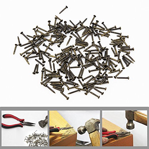 - VINTAGE MINI NAILS: Estos pequeños clavos decorativos con color de latón hermoso y retro, antiguos clavos son buenos como cajas de accesorios de decoración o proyecto diy para enriquecer los detalles que lo hacen más especial