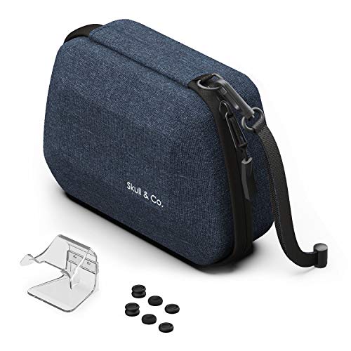 Skull & Co. Controller Case Bundle: Denim Portable Hard Shell Protective Travel Carrying Case and Transparent Phantom Stand for PS5 Controller with Thumb Grips Kits