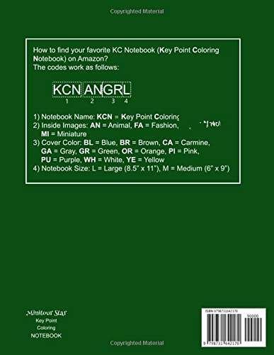 KC Notebook, Key Point Coloring Notebook: Lined Notebook Journal with Key Point, Bullet Space and Animal Coloring Images (Code: KCN ANGRL) - Green ... in x 11 in with 120 Pages and Glossy Cover
