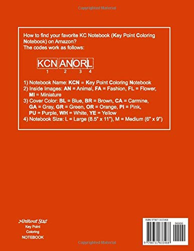 KC Notebook, Key Point Coloring Notebook: Lined Notebook Journal with Key Point, Bullet Space and Animal Coloring Images (Code: KCN ANORL) - Orange ... in x 11 in with 120 Pages and Glossy Cover