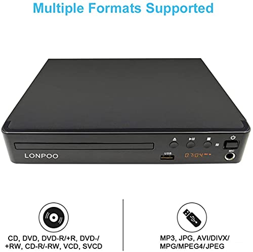 - ☛ Totalmente compatible con DIVX / MPEG4 / DVD / DVD-R / DVD + R / DVD + RW / CD / VCD / SVCD / MP3 / CD-R / CD-RW / JPEG / KADAK (Servicio: garantía de un año y devolución de dinero de 45 días, soporte técnico de por vida, cualquier pregunta, no dude en contactarnos.)