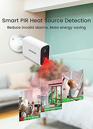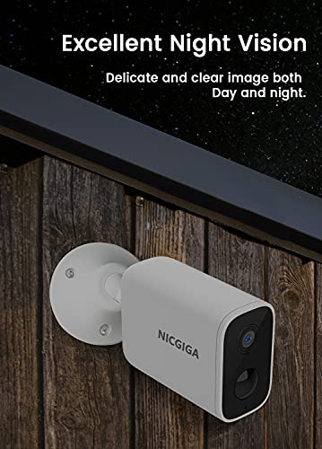 Cámara Vigilancia Exterior Inalámbrica WiFi con Batería Recargable, NICGIGA Cámara con Visión Nocturna Impermeable, Detección de Movimiento PIR,Audio de 2 Vias 1080P