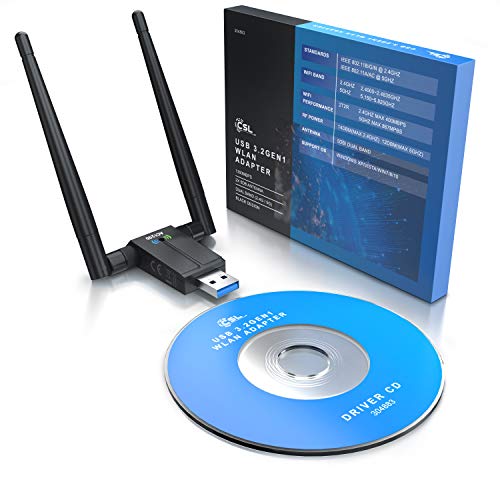CSL – WiFi USB 3.2 Gen1 Stick 1300 Mbps Dual Band – WiFi 2,4 + 5 GHz Antenas externas 2 x 5 dBi – Mini Adaptador Stick Wireless LAN dongle WiFi Dongle Alta Velocidad para PC con Windows 10, 8.1, 8, 7