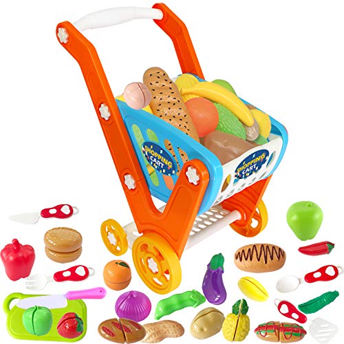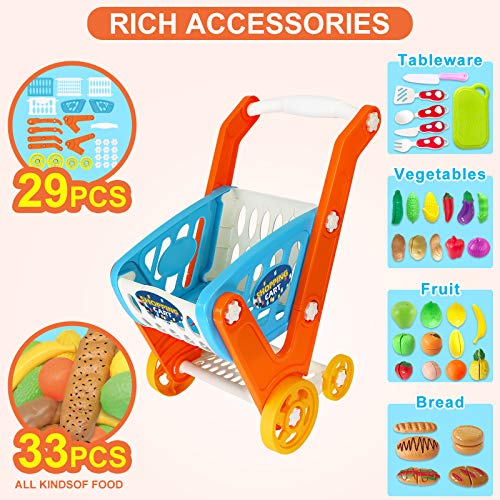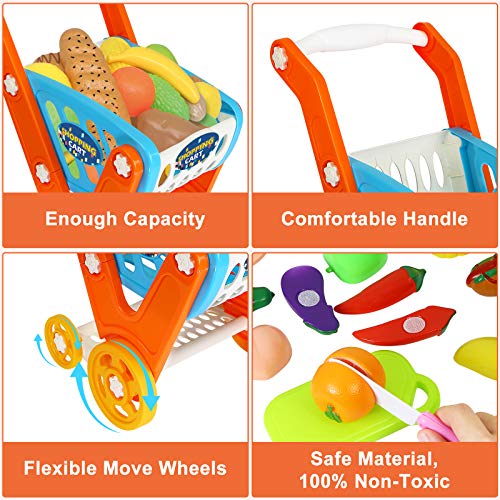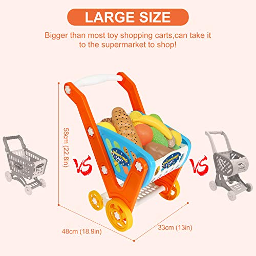 GRESAHOM Carrito de la Compra de Juguetes, 33 Piezas Juego de Carrito de Gran tamaño con Accesorios de Corte, Juguete Educativo de Aprendizaje para niños de más de 3 años