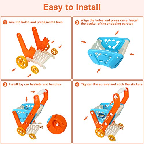 - [ Carrito de Compra de Montaje ] : 38 x 22 x 49 cm. Fácil de montar, los padres pueden completar el montaje de los carrito compra juguetes con sus hijos para promover la interacción entre padres e hijos.ejercitar la habilidad práctica y adquirir una sensación de logro.
