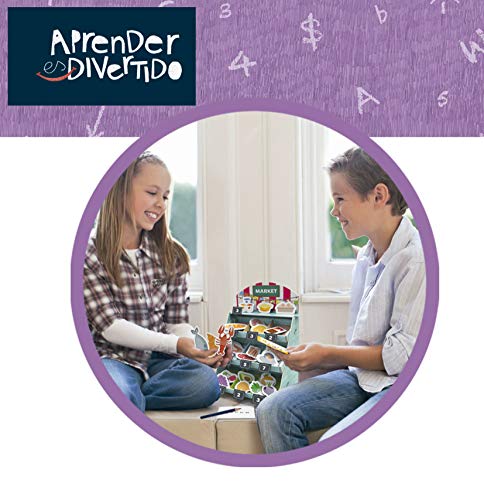 - Contenido: 1 mercado de cartón en 3D (8 piezas), 1 cesta de la compra, cinta adhesiva, 61 alimentos de cartón, 12 carteles de precios, 61 monedas de cartón, 10 billetes de papel, 20 listas de la compra, 1 bloc de papel, 1 lápiz, instrucciones.