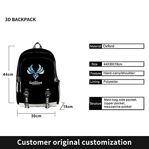 Genshin Impact Merch Mochila escolar Bolsa de viaje Mochila de tres piezas Bolsa de viaje, 1.3,