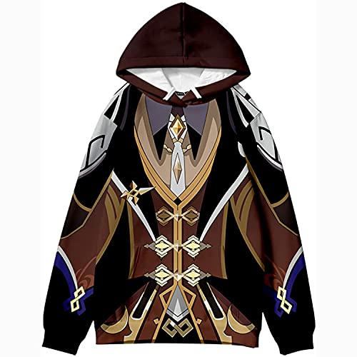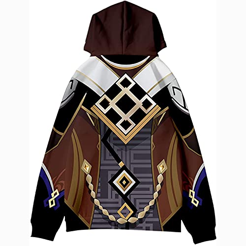 XAYGB Sudadera Capucha,Genshin Impact Zhongli Manga Larga Hoodie Anime Cosplay Moda Informal Impresión Pulóver