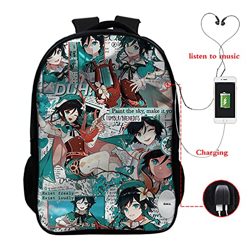 YZZR Genshin Impact Venti Mochila,Lona Bolsa Escuela Bags Juego Personajes Compras Diarias Duradera NiñOs NiñAs Regalo