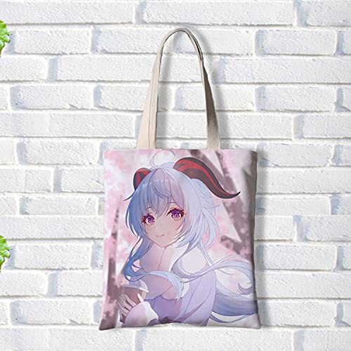 ZWWZ Genshin Impact Ganyu Bolsa de Hombro de Lona Anime Mujeres de Gran Capacidad Casual Bolso Tote