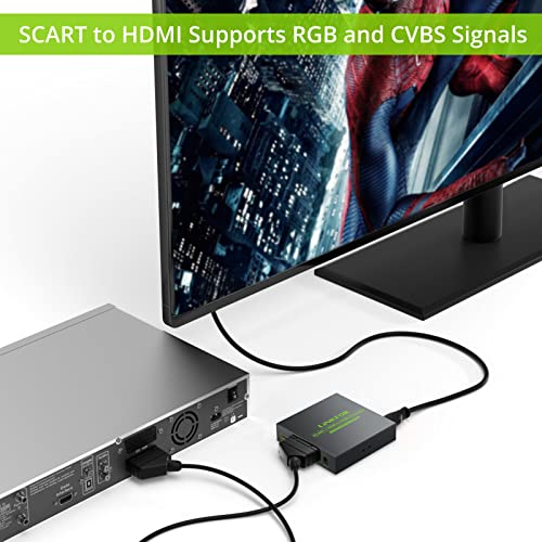 - 【Convertidor SCART a HDMI】Convierte la Señal RGB y de Video Compuesto a Señal HDMI. Transmisión de video Estable y Alta Antiinterferencial.