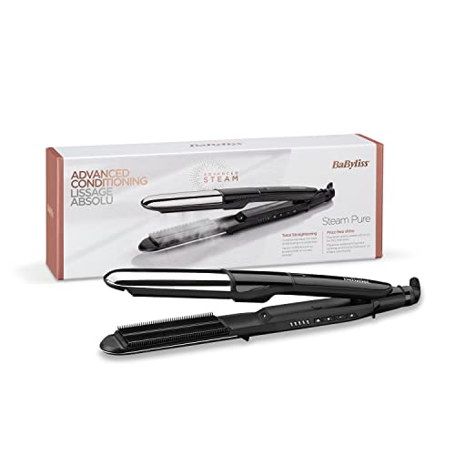 BaByliss Steam Pure ST495E Plancha de Pelo de Vapor, Máxima Hidratación, Placas Exteriores para Ondular, Función Alisa y Ondula, Tecnología Iónica, 5 Ajustes de Temperatura de 150°C a 230°C