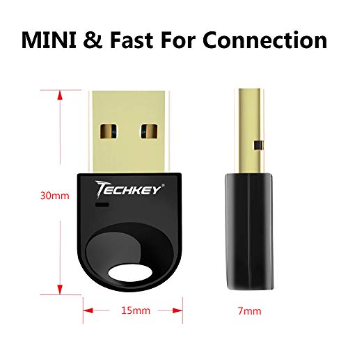 Techkey Adaptador USB Bluetooth 4.0, Bluetooth dongle CSR 4.0 Transmisor Receptor Bluetooth para PC Laptop Desktop para Auriculares Teclado Mouse Compatible con Windows 10/8/7/ XP