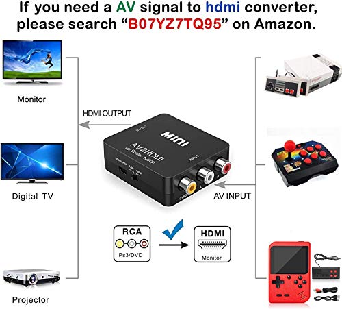 - ⭐?️【fácil configuración】soporta la interfaz de salida AV, la pantalla es clara, la conexión es más conveniente, se aplica al sistema de televisión NTSC / PAL - D, le permite disfrutar fácilmente en la pantalla grande de los videojuegos interesantes en vivo.¡Sólo Plug and Play, no hay necesidad de instalar!(Nota: asegúrese de que su tv / pantalla tiene un puerto de entrada av.)