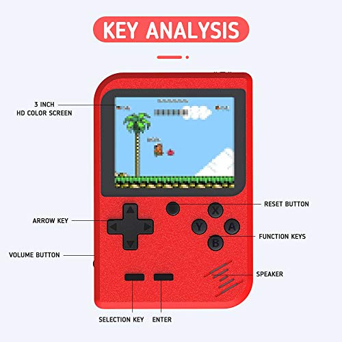 - 【Pantalla de 3 pulgadas】 Consola de juegos pequeña con una pantalla de 3 pulgadas, que es portátil para que la gente la tome de la mano y juegue. (el gamepad NO está incluido en nuestro paquete)