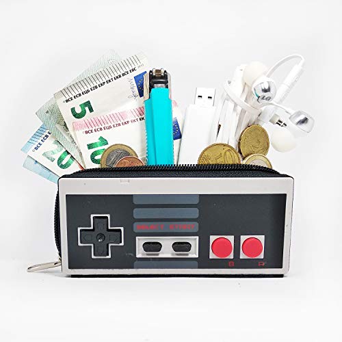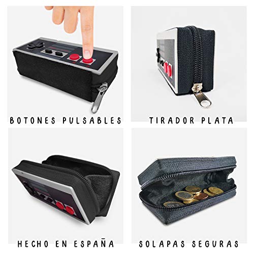 Mancha de Creación - Monedero de Mando NES, Cartera Retro Consola Gris, Cremallera Negra, Regalo Friki, Gamer, Retro, Vintage, Mujer y Hombre