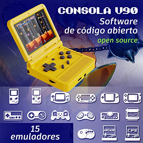 Consola portatil retro, Powkiddy V90, más de 2000 juegos de Snes, Nes, GB, GB advance, Megadrive, Neogeo, PSone, Neogeo, Mame, Código abierto Linux, Juegos Msdos, Posibilidad de añadir juegos