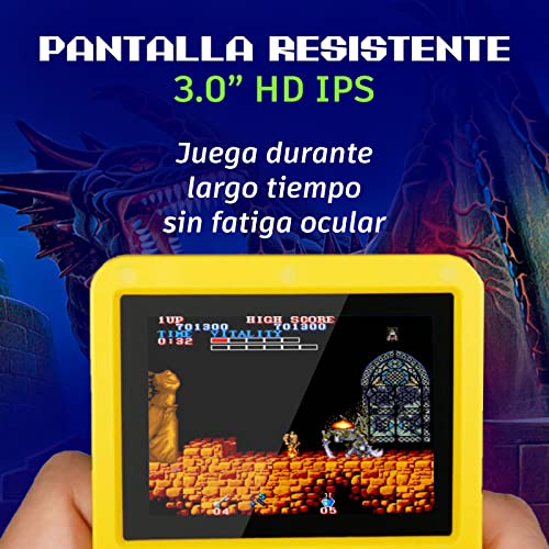 - ?PANTALLA DE 3" 4:3 DE GRAN CALIDAD: Con una pantalla de 3" formato 4:3 ideal para los juegos retro, disfrutará de sus juegos más recordados como lo hacia de pequeño pero con la gran ventaja de tener 15 sistemas y más de 2000 juegos instalados en una consola totalmente portatil