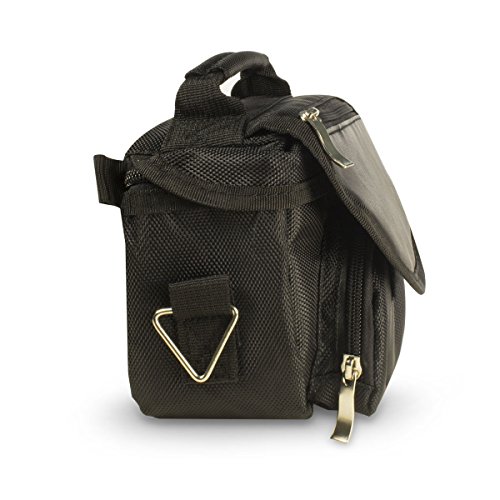 - La bolsa incluye un asa para la mano, más trabilla para el cinturón, y corra ajustable para colgarla del hombro y dejar las manos libres.