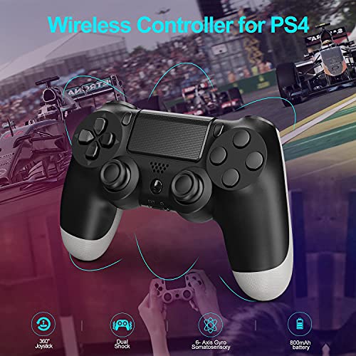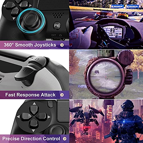 - ? 【Botones optimizados y un controlador altamente sensible】 El diseño inalámbrico del controlador PS4 El botón de gamepad está optimizado con un excelente diseño de joystick de doble analógico. Y el controlador ergonómico es altamente sensible a lo que el tiempo de reacción acorta y mejora la precisión en momentos críticos.