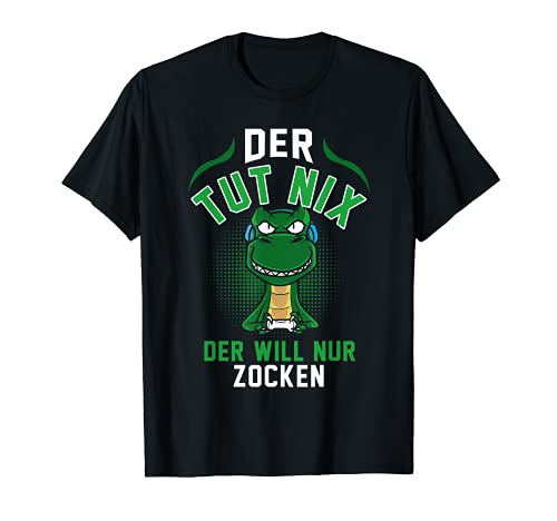 - Este disfraz de gamer con el diseño: "Der Tut Nix Der Will Nur Zocken" es ideal para jugadores a los que les gusta jugar videojuegos en la consola o el ordenador para hacer esports y estar sobre dinosaurios, especialmente el T-rex es genial.
