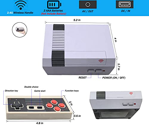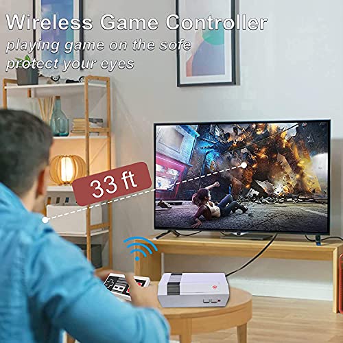 - Control remoto --- En comparación con otras consolas de juegos de cable tradicionales, la consola de juegos puede ser controlada por bluetooth 2.4G con una distancia de 10 metros. Pero recuerde instalar la batería en el controlador por adelantado. Con la función de control remoto, nunca se preocupa de que sus hijos sufran un problema de miopía porque están demasiado cerca de la pantalla mientras juegan.