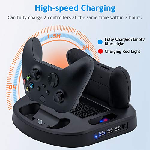 - - Dual chargers allow you to charge up to two Xbox Series X controllers simultaneously. With LED indicator, know charging status at a glance. Save power and time.