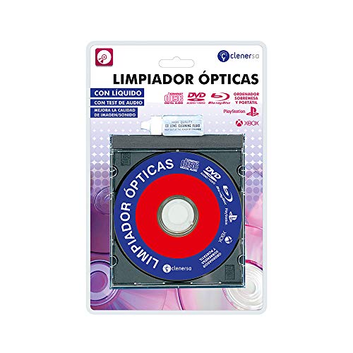 Clenersa Limpiador de Lentes para Reproductores de CD, DVD, BLU Ray, Ordenador y Consolas Xbox y PS, con Líquido