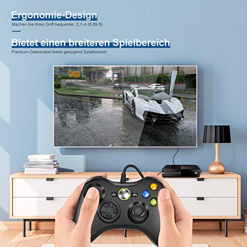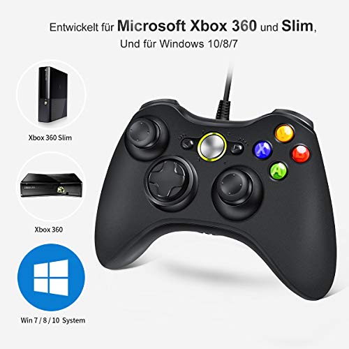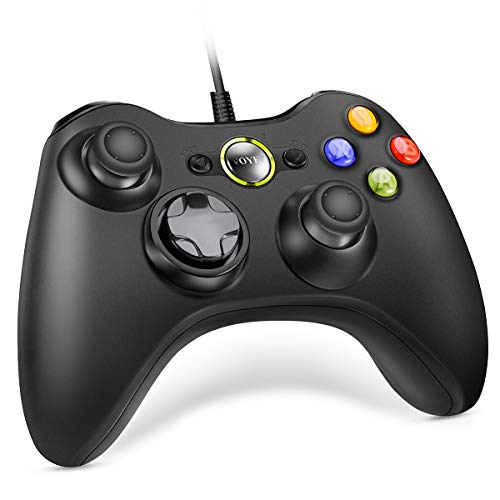 VOYEE Controlador con cable compatible con Xbox 360, USB Gamepad Joystick compatible con Microsoft Xbox 360 Slim/PC Windows 10/8/7 (negro)