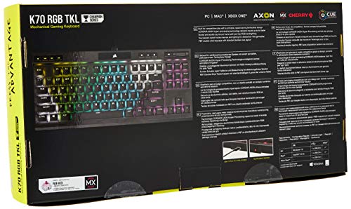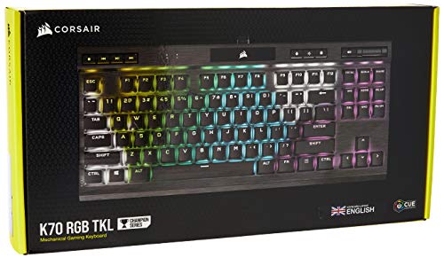 Corsair K70 RGB TKL Champion Series Tenkeyless Teclado mecánico para Juegos (Cherry MX Red Keyswitches: Lineal y Suave, PBT Double Shot Keycaps, retroiluminación LED RGB por tecla) QWERTY, Negro