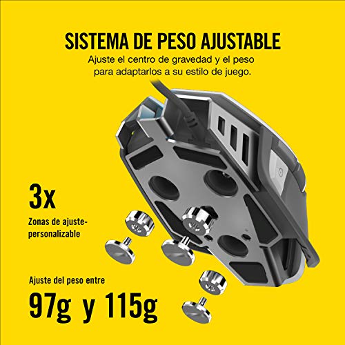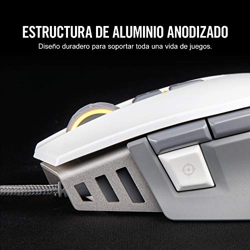Corsair M65 Elite RGB Óptico FPS - Ratón para juegos (18 000 PPP Óptico Sensor, Retroiluminación RGB LED, sistema de peso ajustable), color Blanco