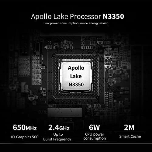 - [Procesador N3350] Equipado con procesador Apollo Lake N3350 de 64 bits, caché de 2 M, frecuencia base de 1,10 GHz, hasta 2,4 GHz, con HD Graphics 600, proporciona una decodificación de datos más rápida y eficiencia para la investigación y el desarrollo.