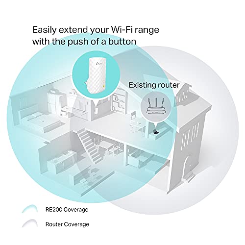 TP-Link RE200 AC750 - Repetidor de red Wifi extensor amplificador de cobertura con enchufe(Puerto Ethernet, 10/100 mbps, Banda dual, 300Mbps, 2.4 GHz, 433 Mbps 5GHz), Blanco