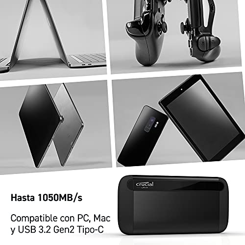 Crucial CT1000X8SSD9 X8-SSD portátil 1TB, de hasta 1050 MB/s, USB 3.2, Unidad de estado sólido externa USB-C, USB-A