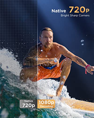 - Aspecto elegante: el aspecto de cuero lujoso hace que este proyector se vea elegante. Incluso cuando no está en uso, se puede utilizar como accesorio decorativo y es la manera perfecta de mostrar su gusto elegante. La pantalla táctil sensible da una sensación similar al patinaje con los dedos.