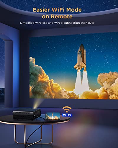 - Conexión WIFI de una tecla: el proyector de alta definición puede cambiar a la página de conexión con el control remoto de una tecla. El WIFI 4G sin fisuras garantiza una conexión de imagen de baja latencia. El WIFI de alta velocidad de 2.4G garantiza una conexión de baja latencia y reduce la demora, lo cual es una buena opción para los amantes de los juegos.