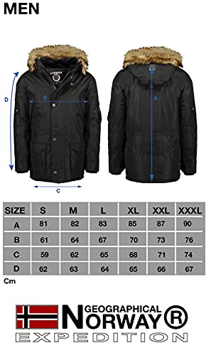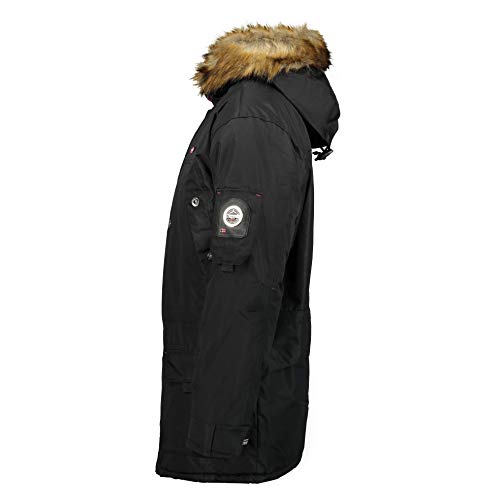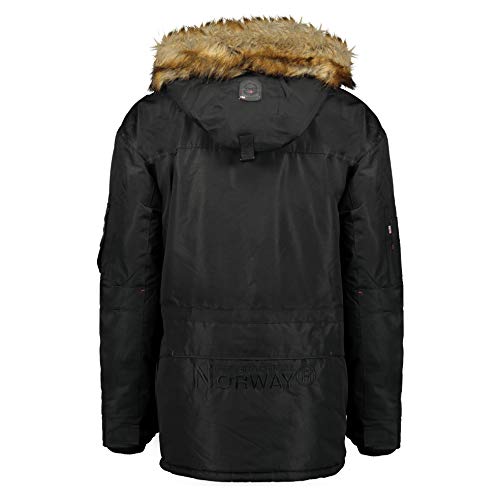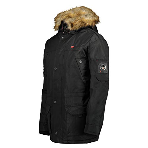 Geographical Norway Abiosaure Men Distribrands - Chaqueta Impermeable Hombre - Abrigo Piel Grueso Capucha Exteriores - Chaqueta Cortavientos Invierno Forro Exterior Hombres (Negro L)