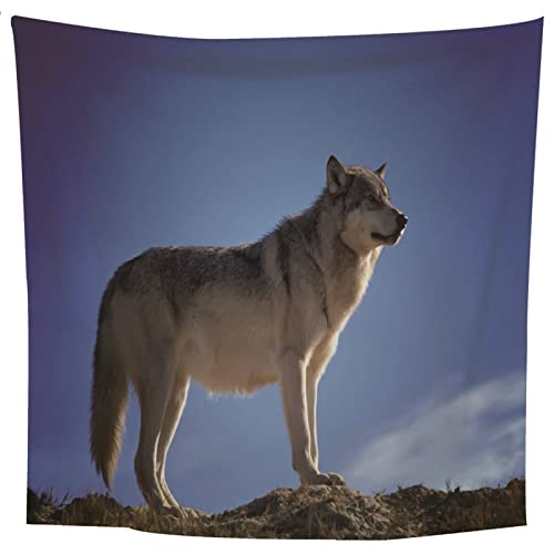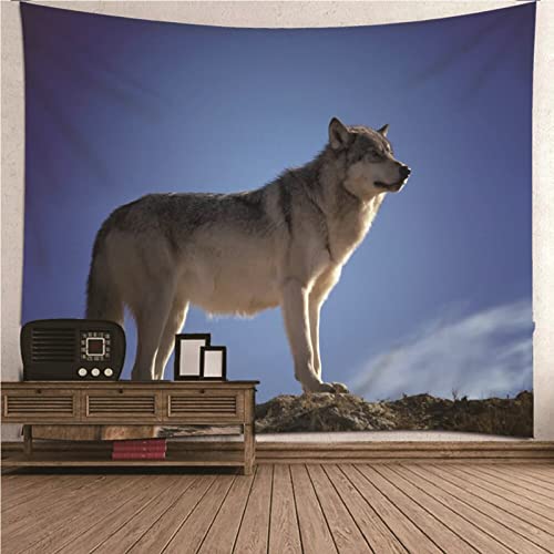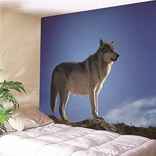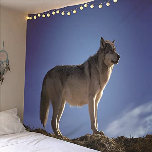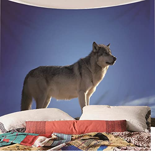 Aotiwe Tapices de Pared Navidad, Decoración Salón Pared Tema Animal Lobo Poliéster Azul 150x130CM Regalo Mujer