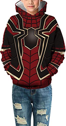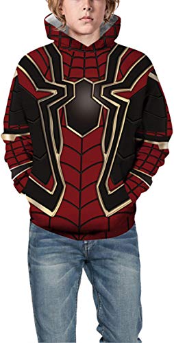 Niños Sudaderas con Capucha 3D Impreso Hoodies Sweatshirt Bolsillos de Mangas Largas (araña roja,13-14 años)