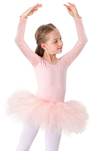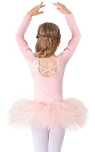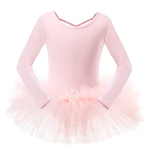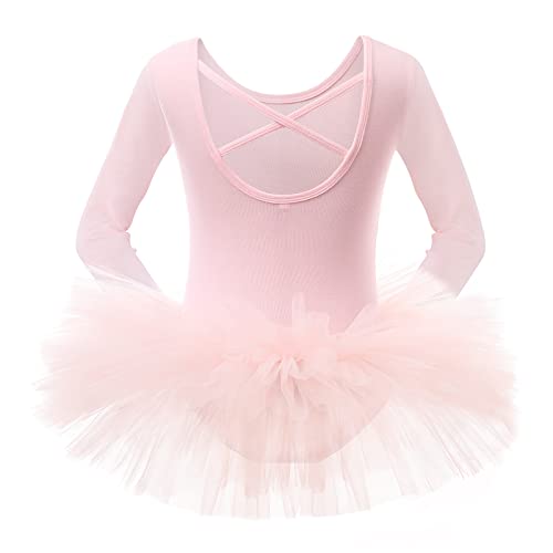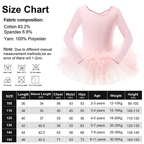 Bezioner Maillot de Danza Tutú Vestido de Ballet Gimnasia Leotardo Algodón Body Clásico para Niña (110 (100-110 cm, 3-4 años), Rosa de Manga Larga)