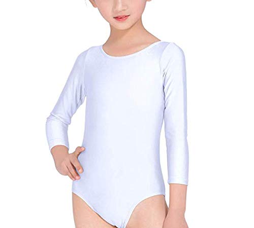 Carnavalife Maillot Ballet Danza Niña de Manga Larga y Cuello Redondo (Blanco, 1-3 años)